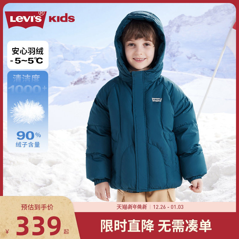 【拒水】李维斯儿童羽绒服男童外套冬装2025新款童装保暖面包服厚