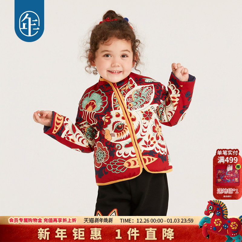 年衣童装男童外套冬新款儿童保暖茄克中国风女童宝宝夹棉外衣上衣