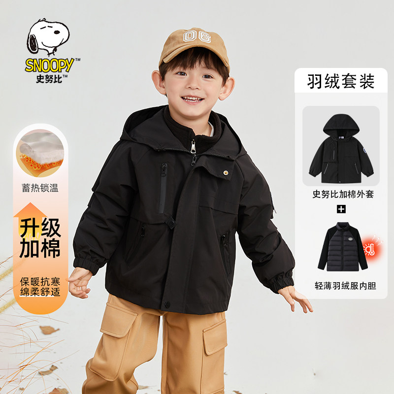 史努比男童外套冬款2025新款洋气儿童加棉羽绒三合一冲锋外套帅气