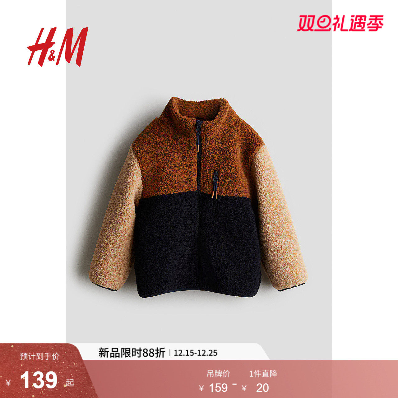 HM童装儿童男童外套冬季立领泰迪绒拉链长袖开衫1185454