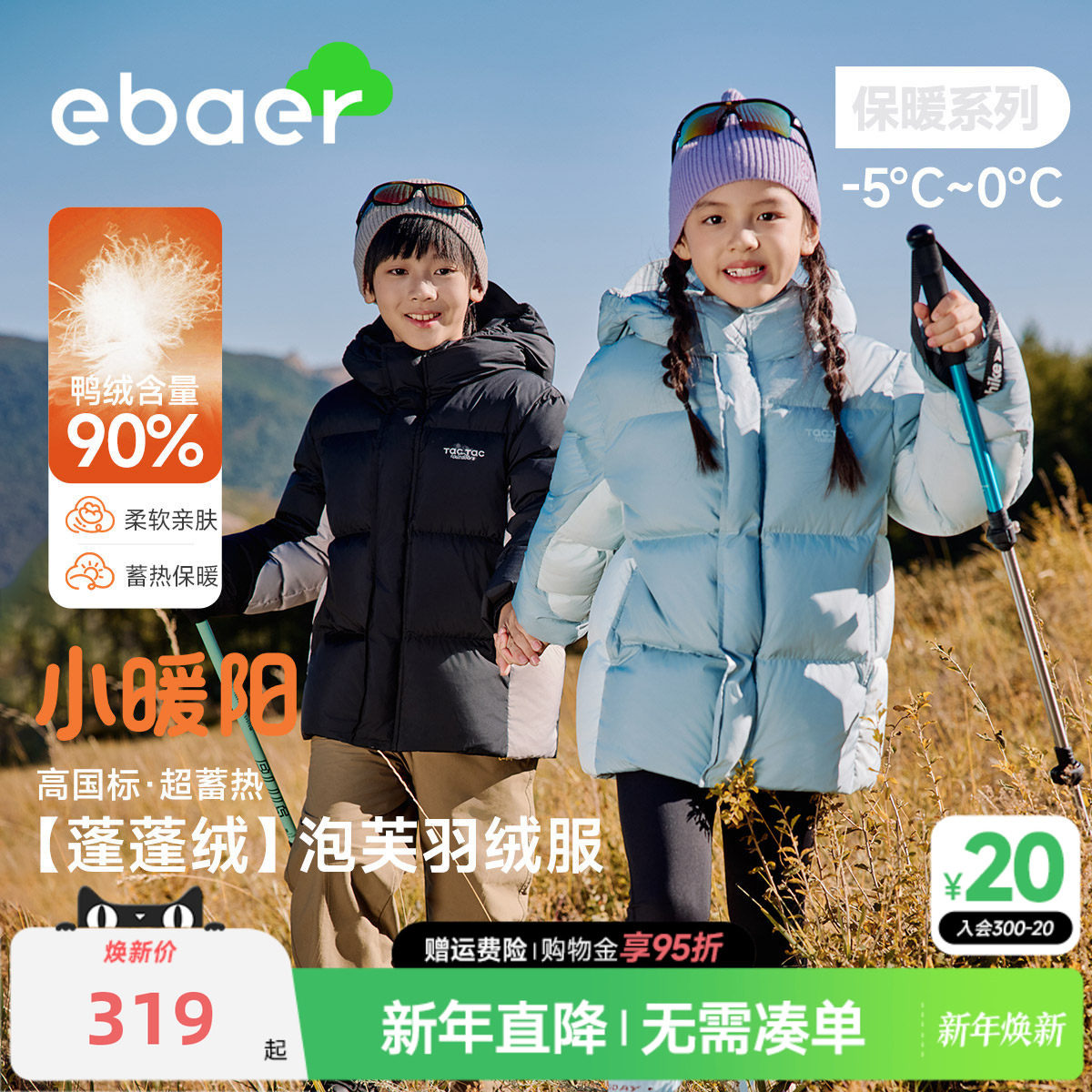 EBAER儿童羽绒服女童2025冬装新款羽绒面包服户外蓄热男童外套冬