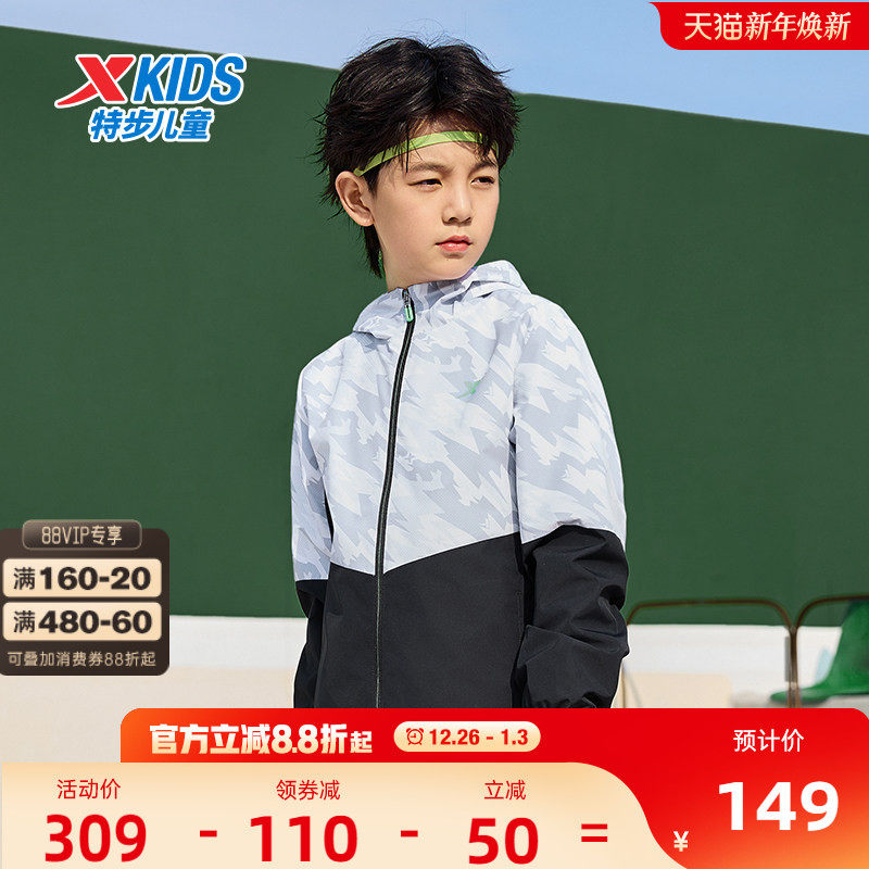 特步童装男童外套冬季新款三防儿童运动风衣厚外套青少年运动上衣