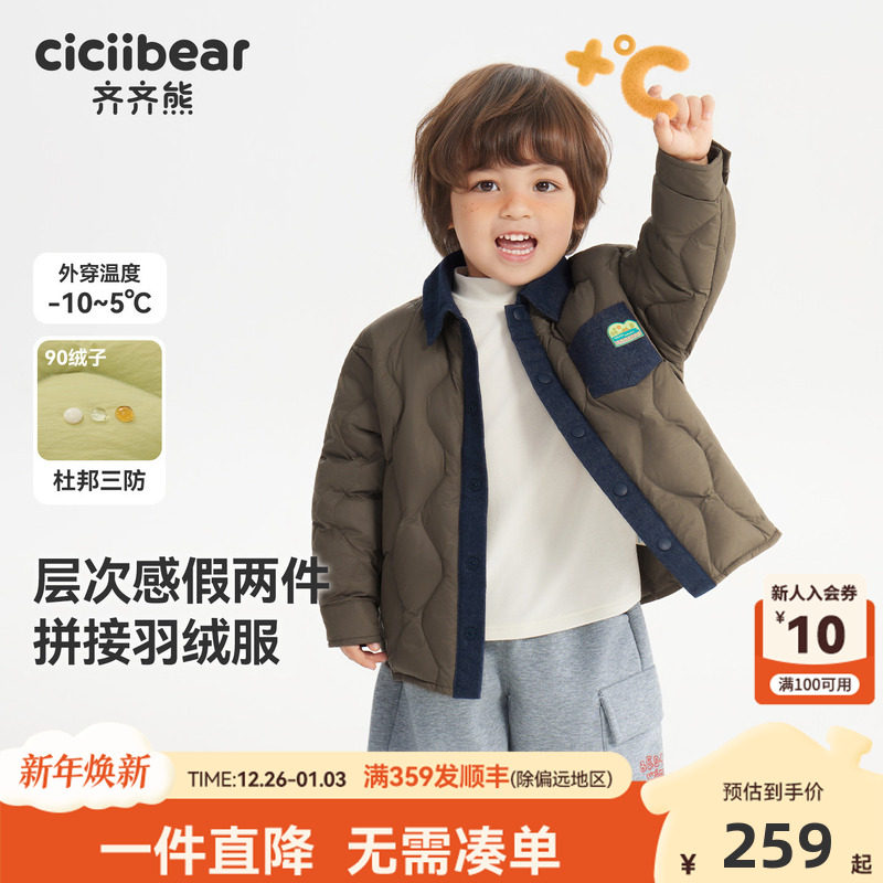 [杜邦三防]齐齐熊宝宝羽绒服男童外套冬装新款儿童保暖假两件上衣
