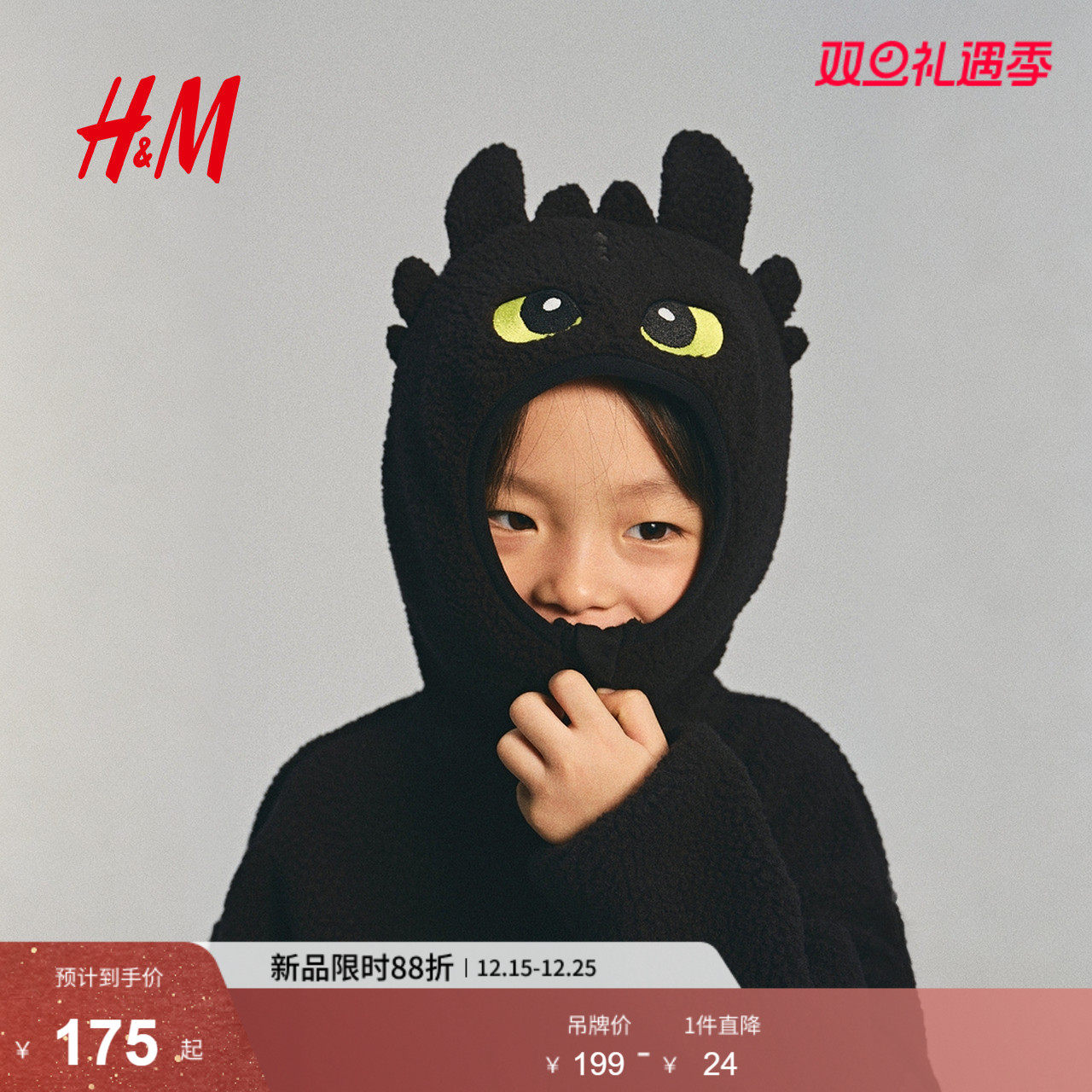 【驯龙高手】HM童装男童外套冬季拉链冬装泰迪绒连帽衫1309023