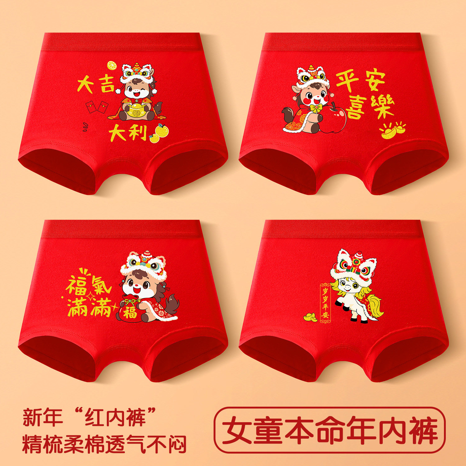 儿童红色内裤新年女童平角裤头马年本命年小女孩四角裤女生打底裤