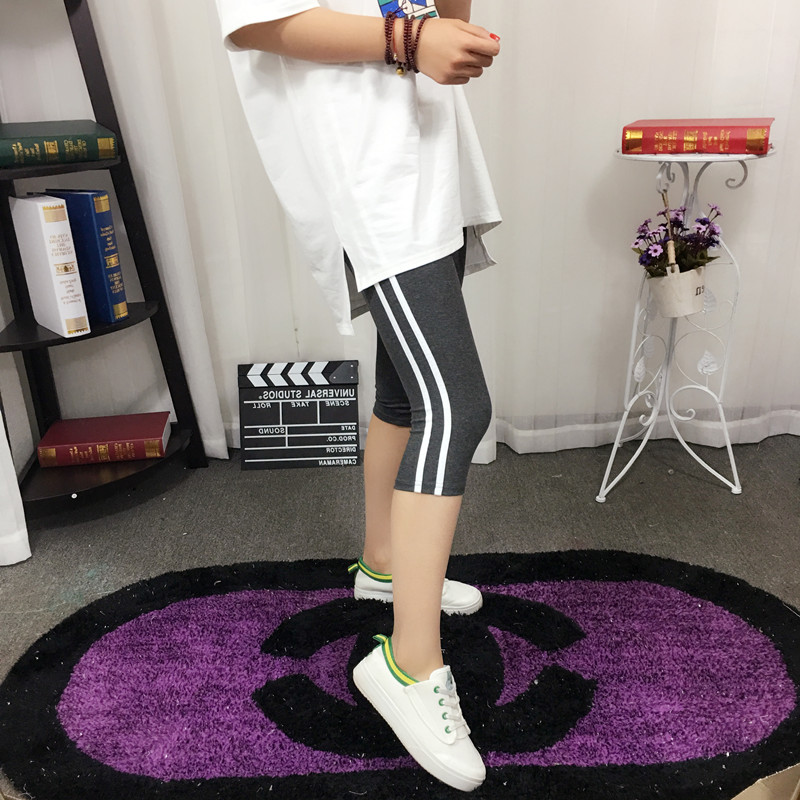 夏季薄款外穿双条纹女生打底裤 弹力修身七分裤运动休闲裤学生裤
