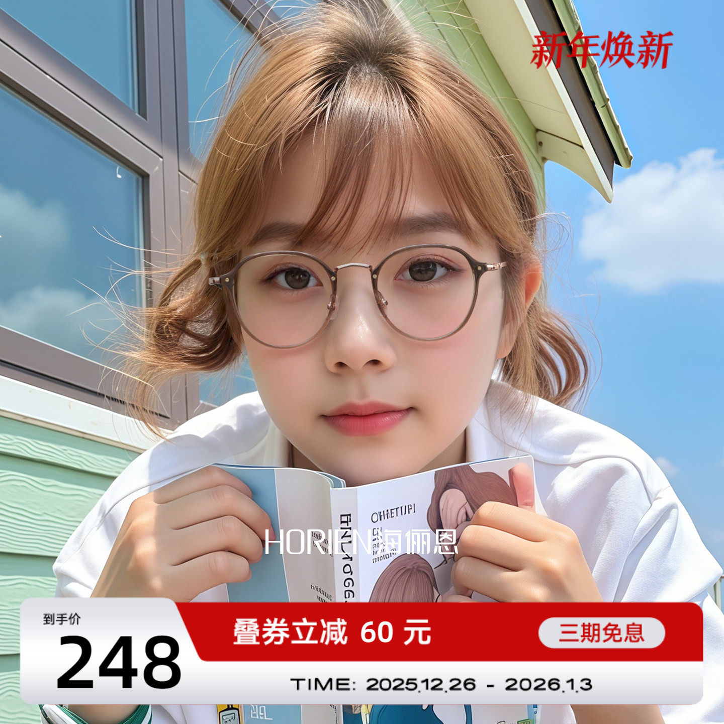 明月镜片近视眼镜女圆脸超轻钛架配近视镜可配防蓝光眼镜框36049
