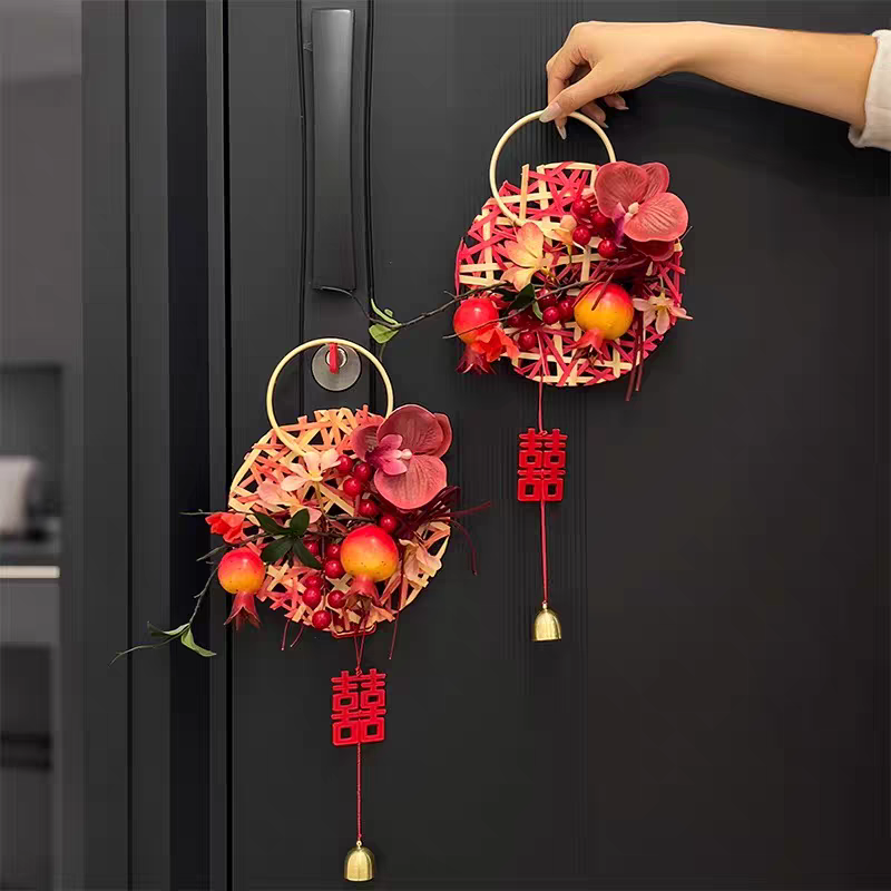 婚房布置用品喜字花环门把手挂件结婚卧室男女方婚房房门挂饰布置