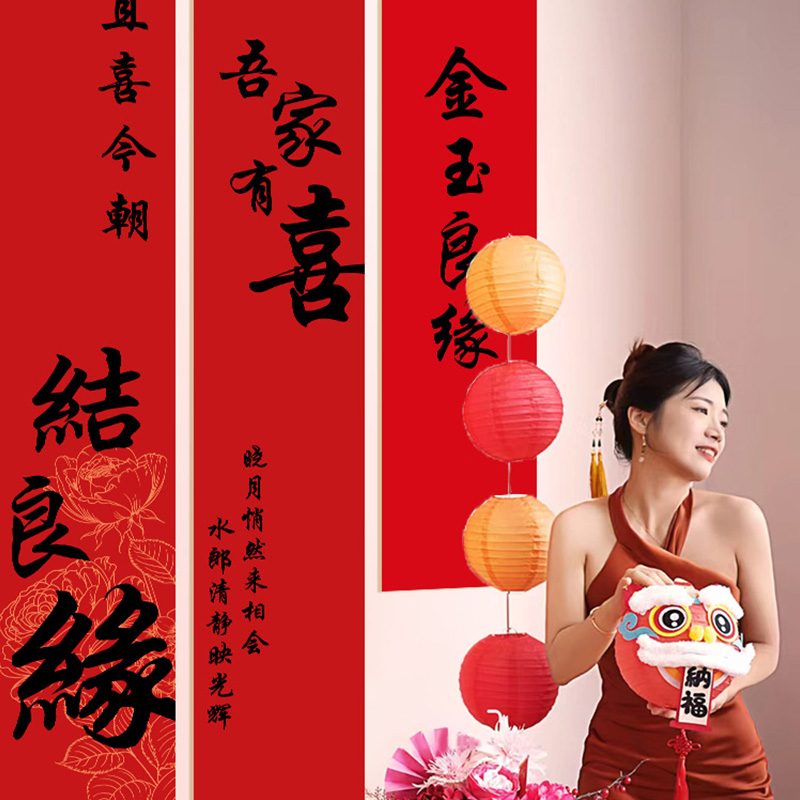 结婚对联男方大门女方出嫁婚礼新房喜联房门全套装饰婚房布置用品