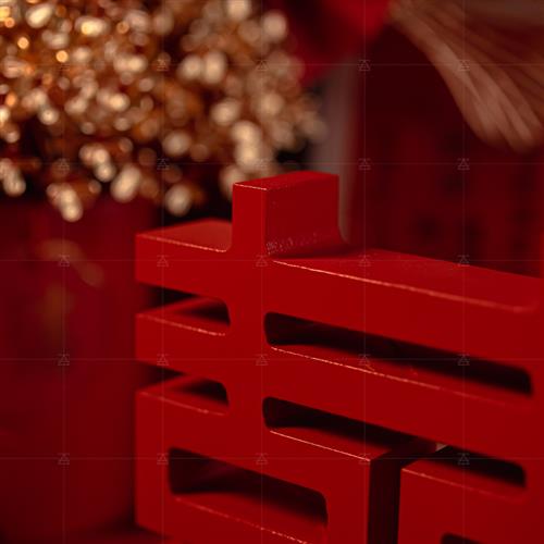 立体实木喜字订婚结婚装饰品客厅卧室婚房布置用品大红色摆件桌摆