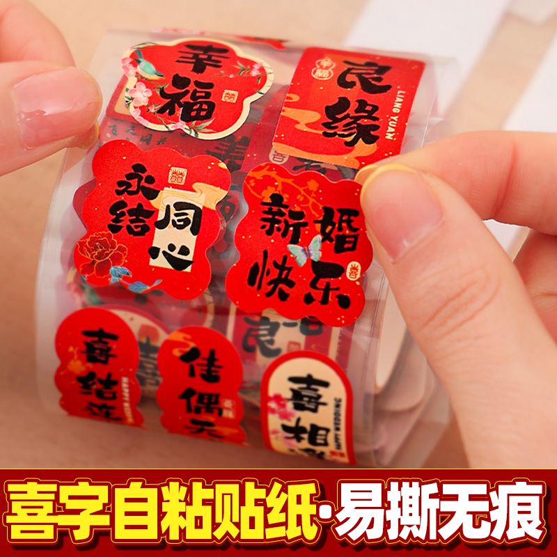 不干胶小喜字贴结婚专用电梯开关婚庆贴纸自粘封口贴婚房布置用品