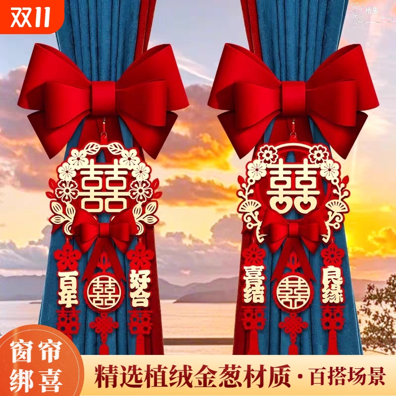 速发婚房布置用品金粉喜字挂饰窗帘饰带装结婚礼男方卧室房间绑绑