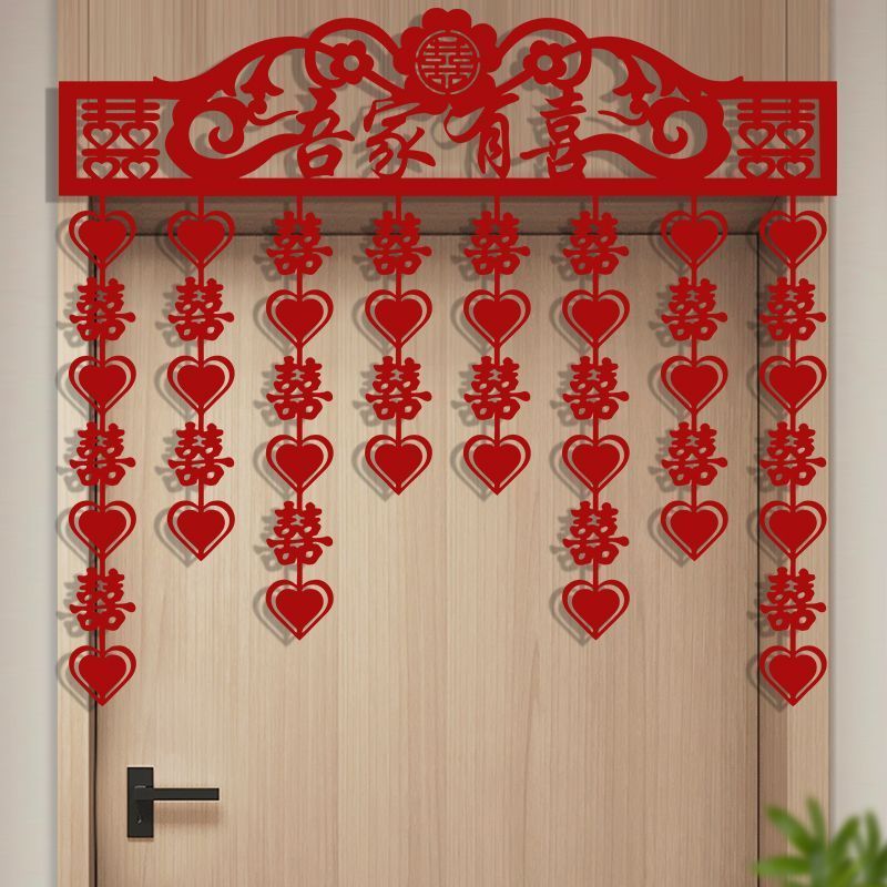 结婚门帘婚房布置用品卧室房门喜字拉花装饰新房客厅门头门楣套装