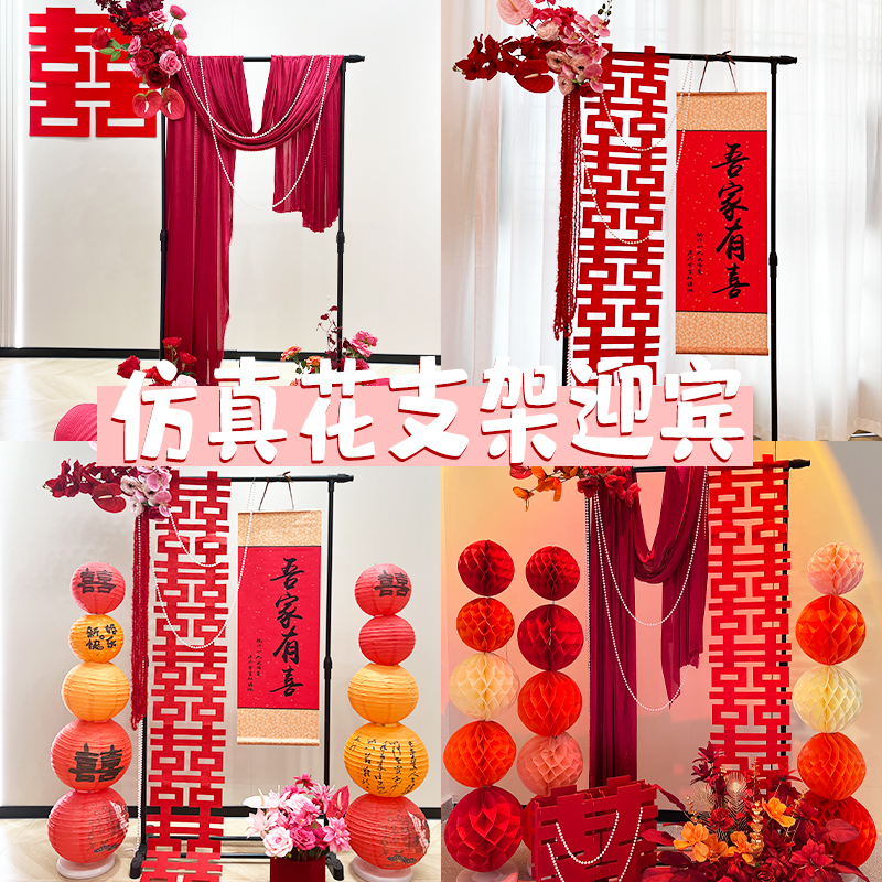 结婚礼喜字套装婚房布置用品订婚宴装饰拍照道具中式卷轴挂画摆件