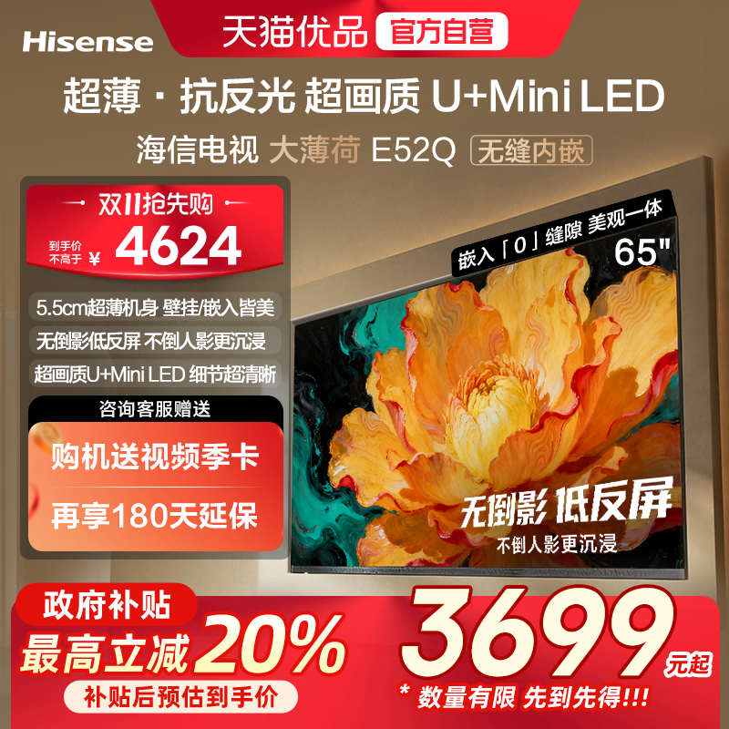 海信电视大薄荷E52Q 65吋 超薄内嵌 抗反光防眩光 MiniLED电视机