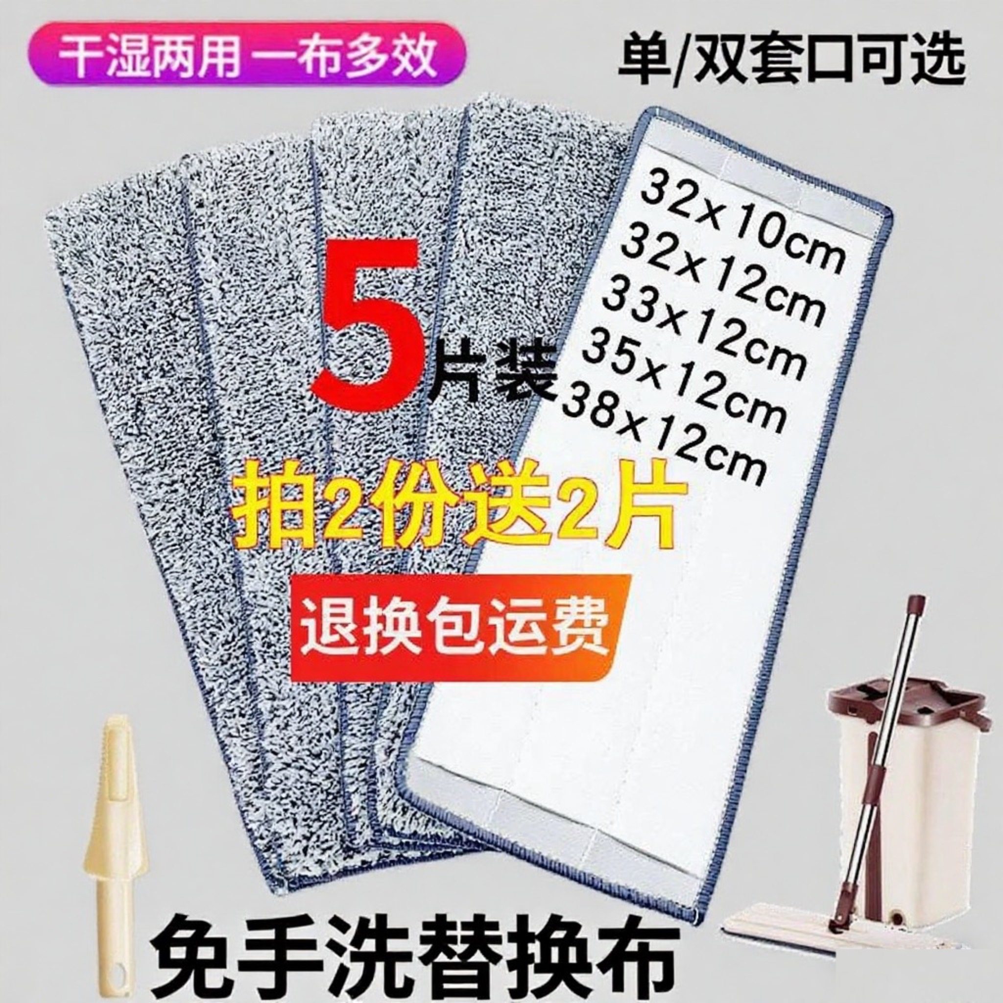 拖把布替换布平板拖粘贴式免手洗拖布头配件尘推墩布加厚两头套布