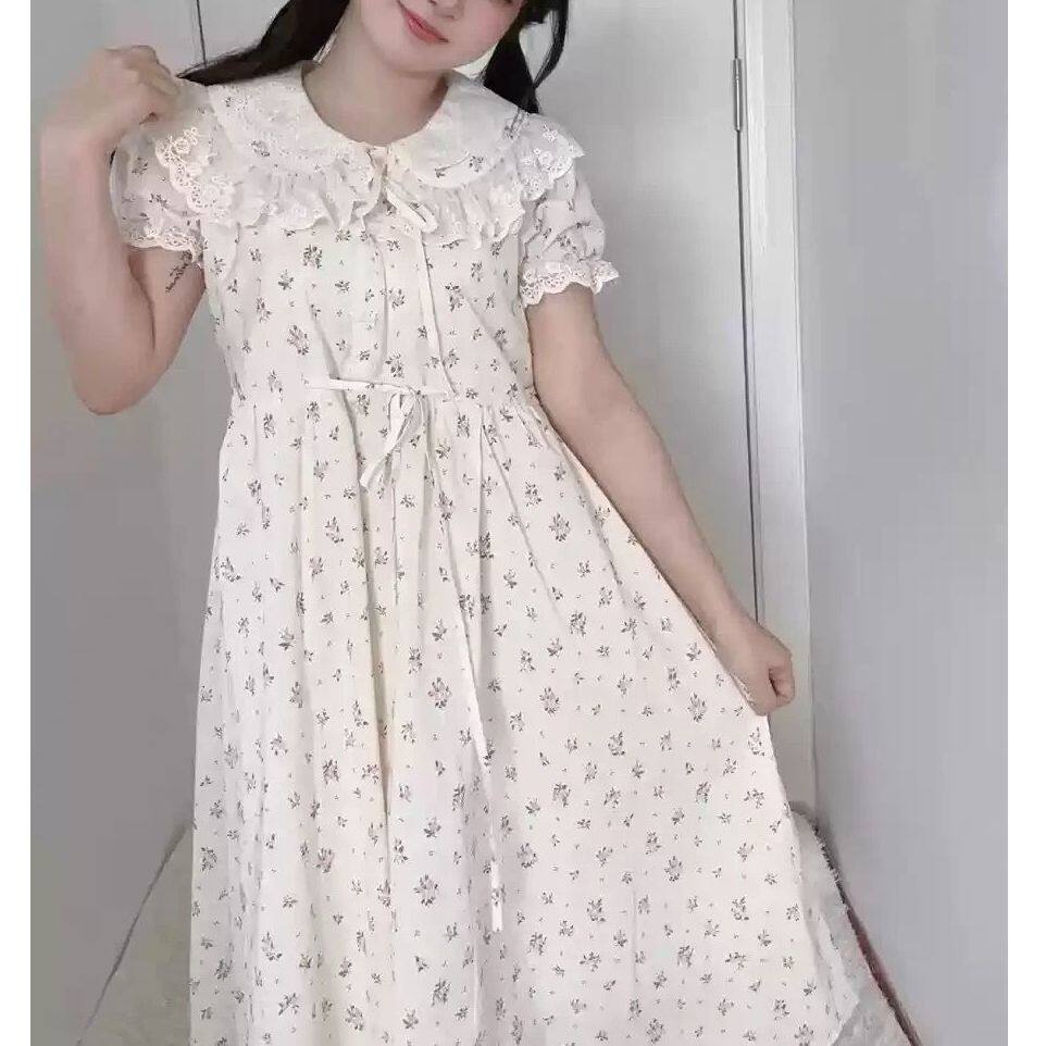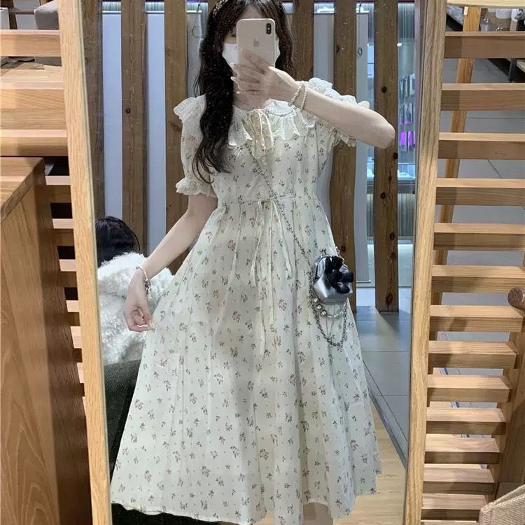法式学院风初恋碎花连衣裙学生韩版宽松中长款娃娃领显瘦减龄裙子