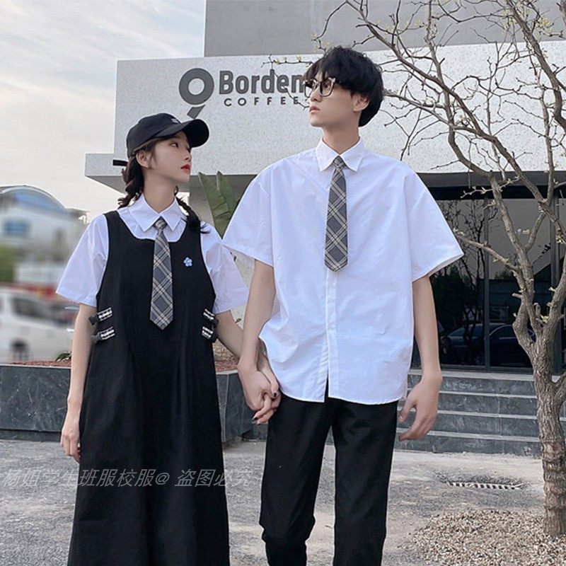 2022新款夏季韩版短袖连衣裙学生装宽松情侣装毕业季学院风班服