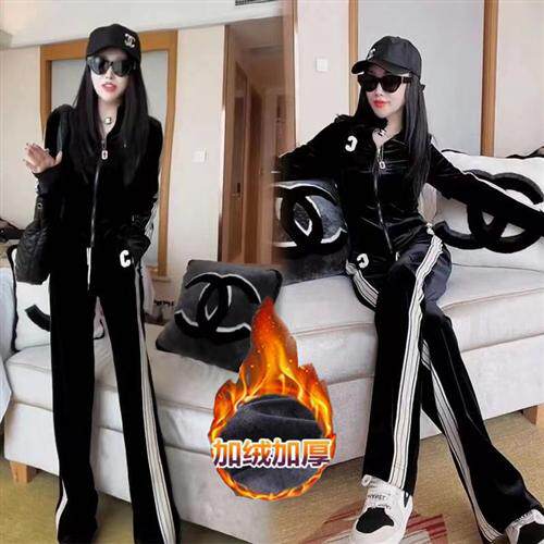 2024秋冬金丝绒加厚休闲运动套装女韩版学生跑步时尚两件套双面绒