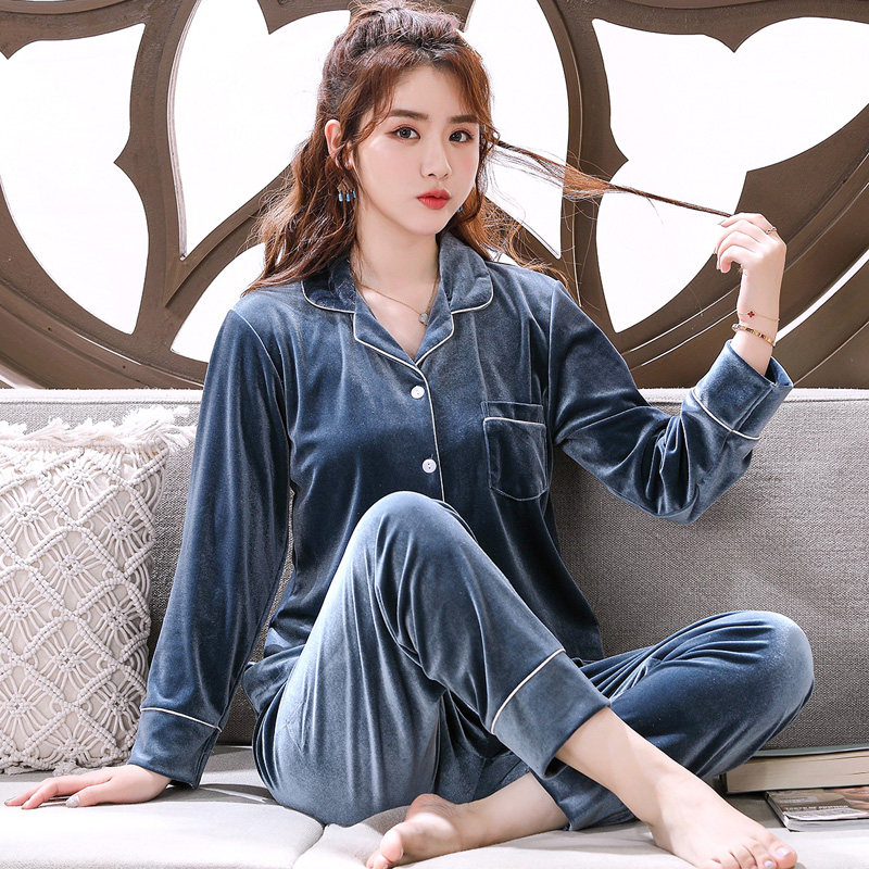 NT【轻柔软】秋冬金丝绒加厚睡衣女士双面绒保温家居服两件套装