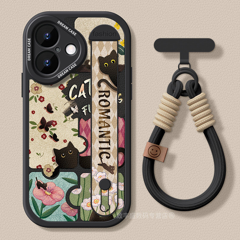 适用苹果17手机壳腕带iPhone16promax保护套新款ip15硅胶支架14plus防摔12mini全包ip13pro油画花丛8/7/6外壳