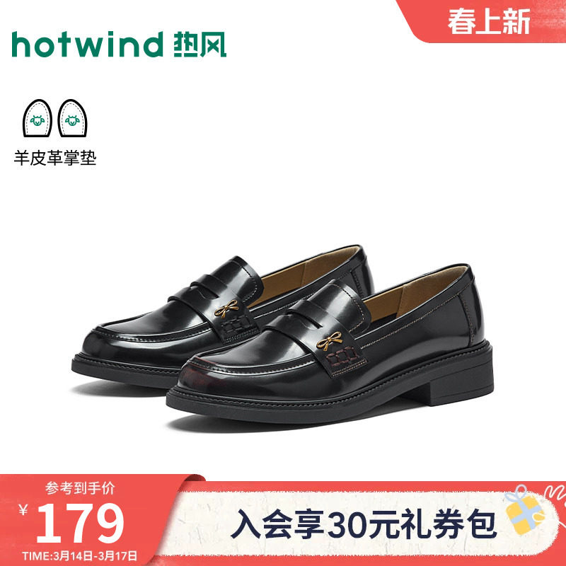 热风厚底乐福鞋女2026年春季新款英伦风黑色小皮鞋粗跟百搭女鞋子