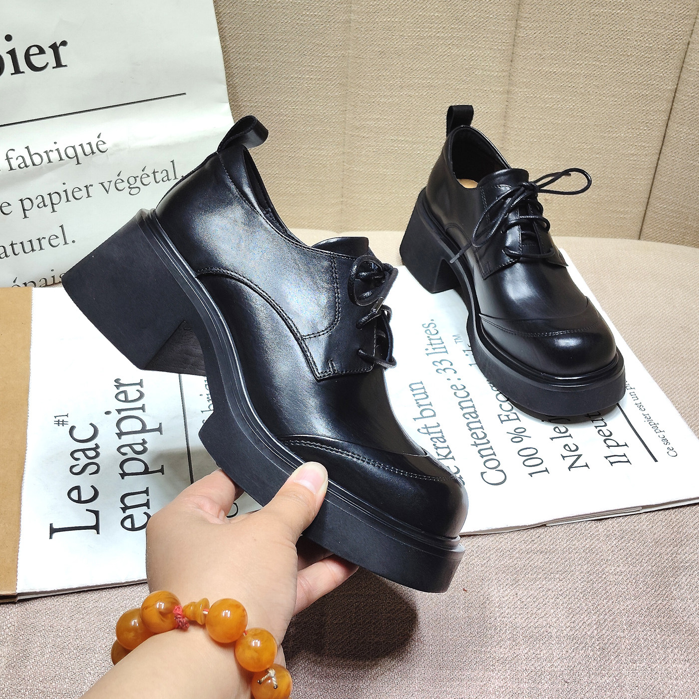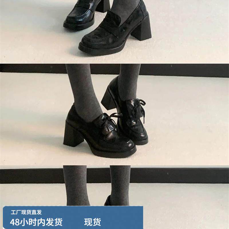 2026新款高跟单鞋女真皮英伦粗跟小皮鞋女厚底深口女乐福鞋单鞋