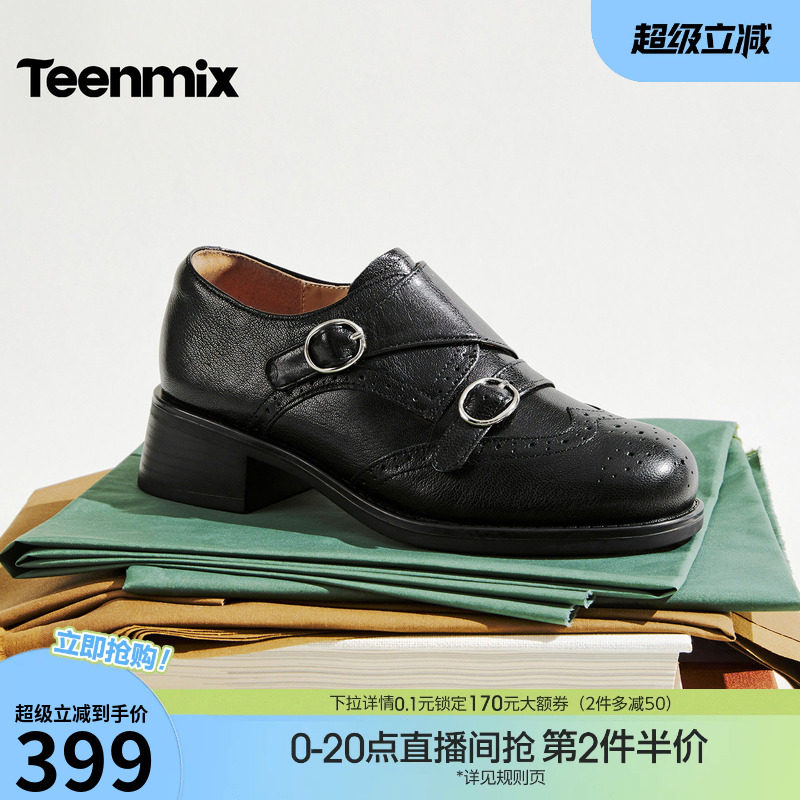 天美意布洛克复古牛津鞋英伦小皮鞋女粗跟单鞋2026春新款KY020AM6