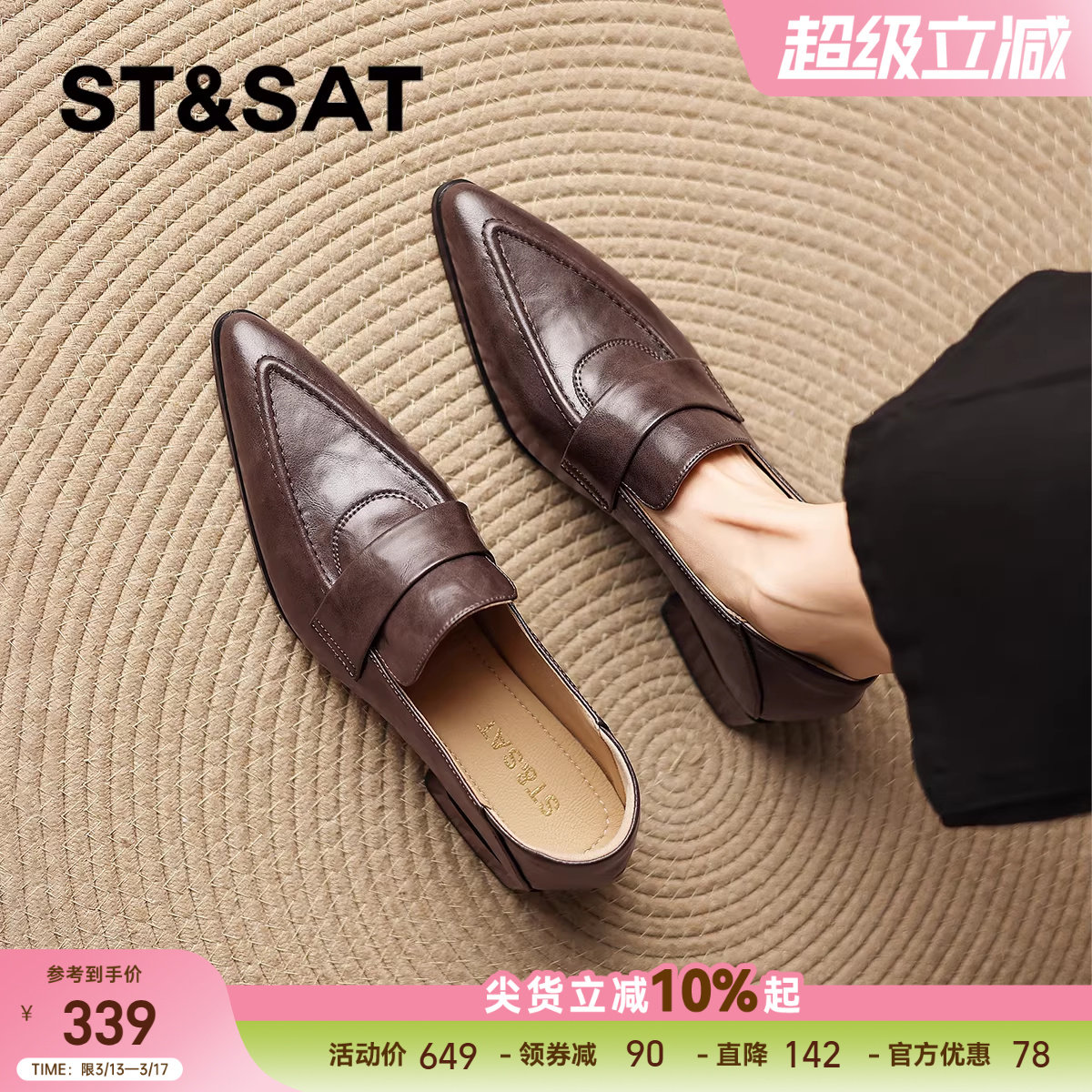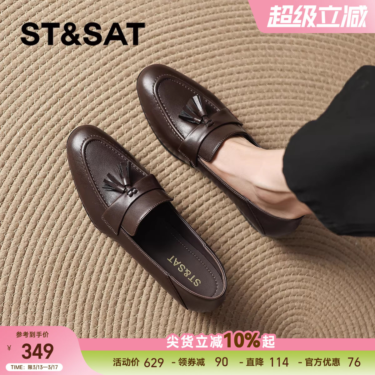 星期六粗跟一脚蹬棕色乐福鞋女款英伦风春季小皮鞋女鞋子女士软底