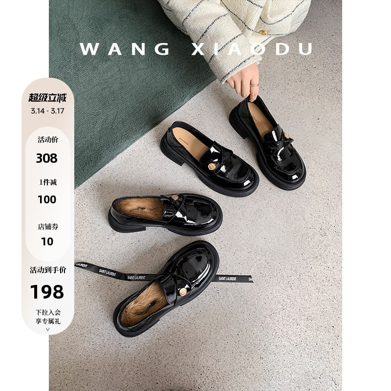 【王小毒】今天星期八●黑色小皮鞋女圆头英伦新款漆皮粗跟乐福鞋
