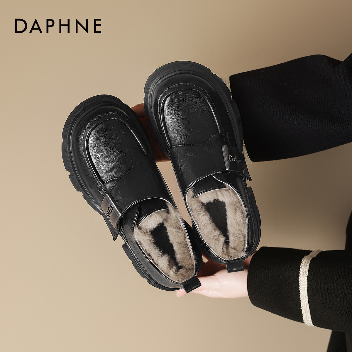 达芙妮厚底乐福鞋女款2026秋冬新款加绒小个子增高英伦粗跟小皮鞋