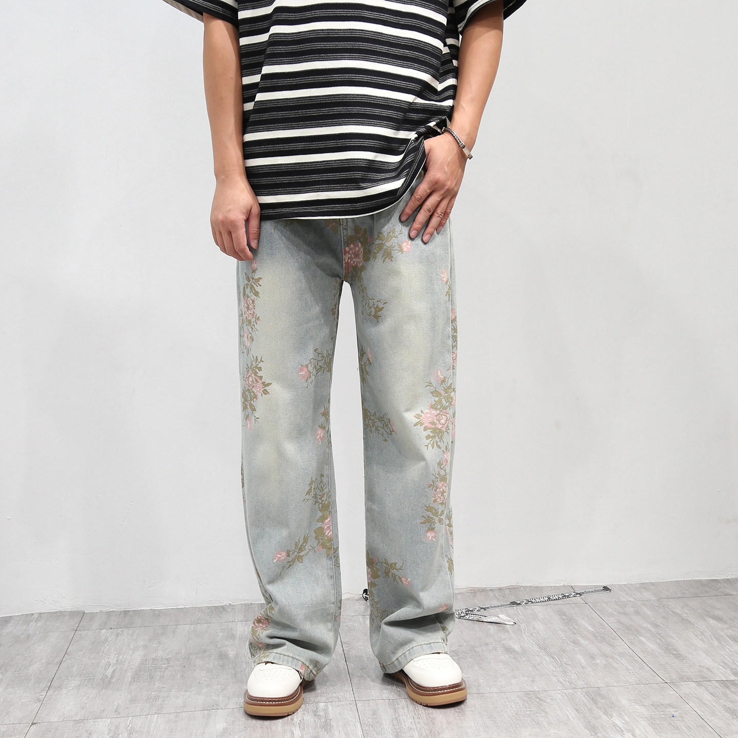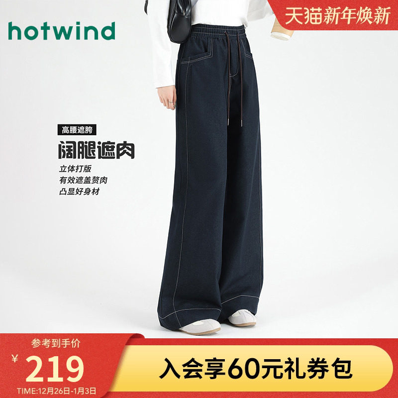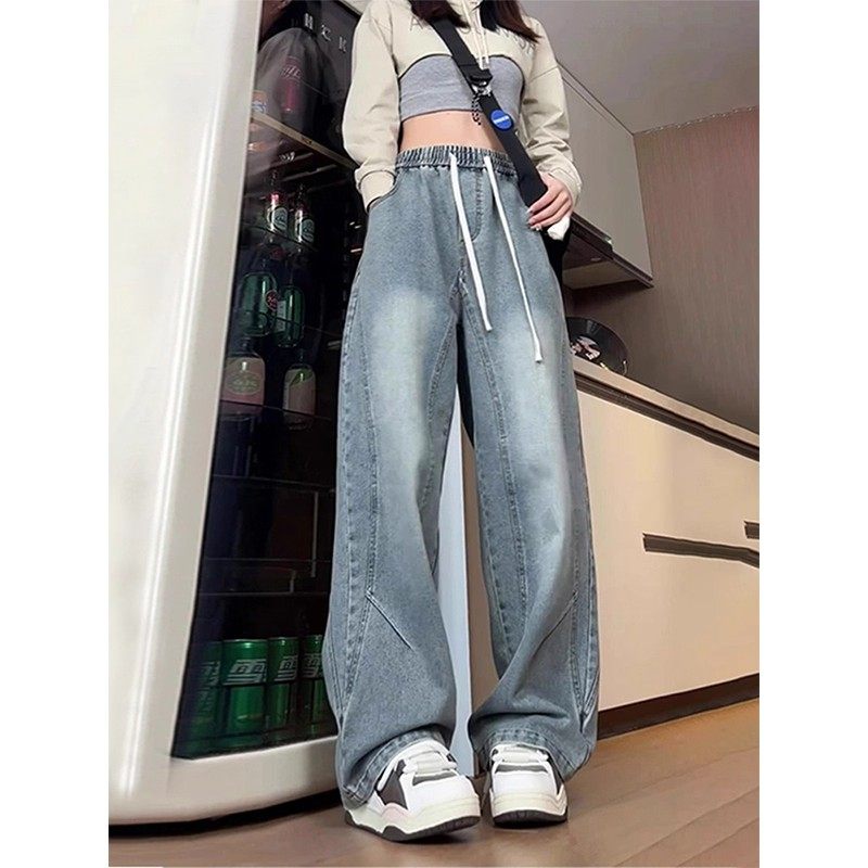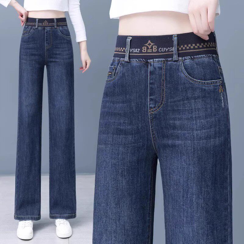 - 高腰阔腿牛仔裤