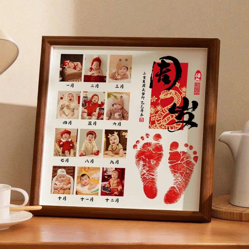 周岁宝宝手足印相框婴儿满月印足一岁一礼手印脚印带照片印泥纪念