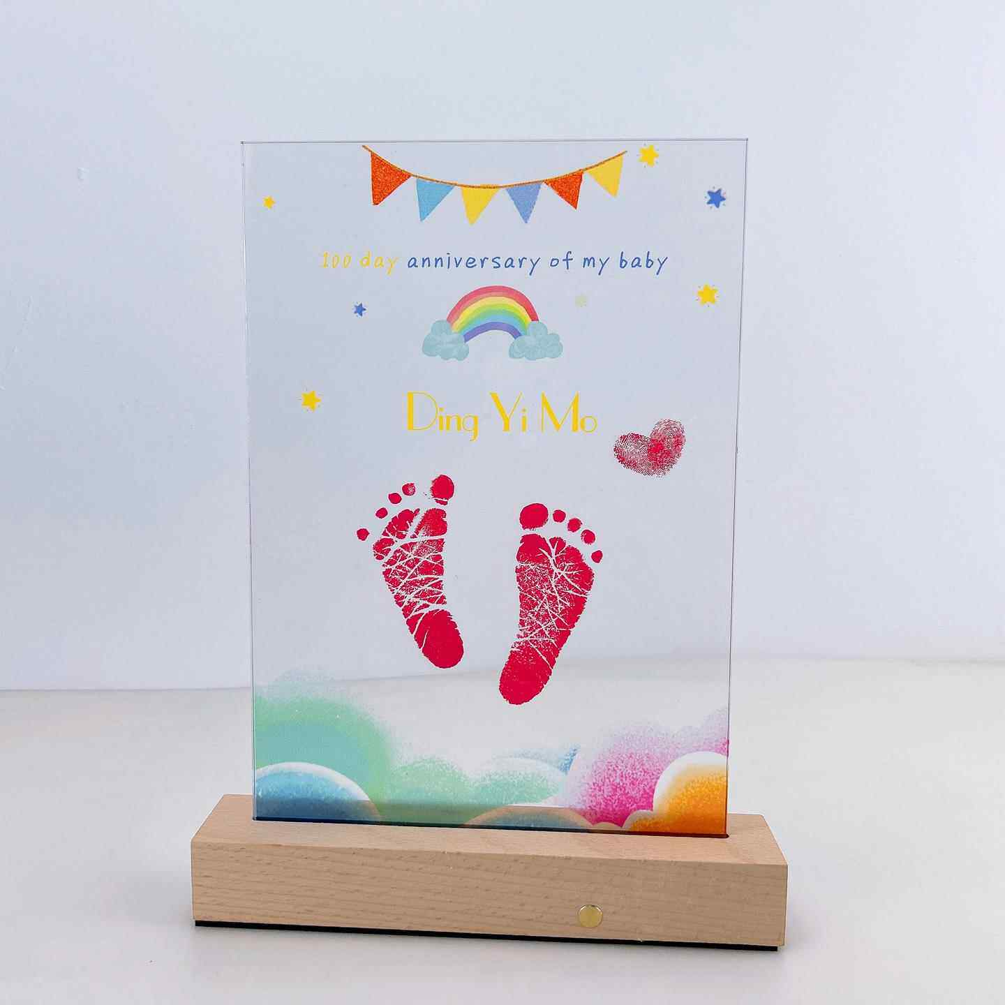 满月脚印手印透明亚克力周岁足印新生儿脚印宝宝脚印手印泥纪念品