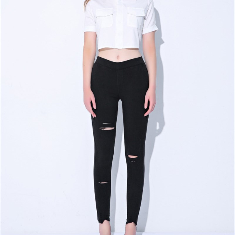 多破洞打底裤女外穿春秋款弹力时尚紧身显瘦黑色铅笔直筒魔术裤子