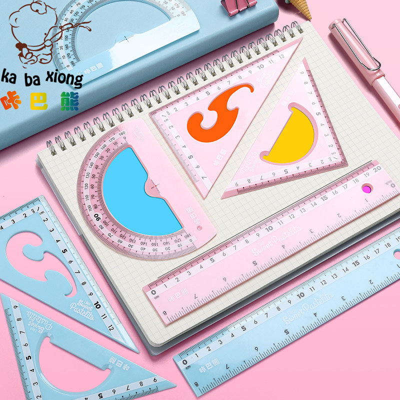 马卡龙学生套尺四件套日韩 可爱儿童卡通15cm直尺三角板测量文具奖品学习用品透明尺子绘图绘画用20cm