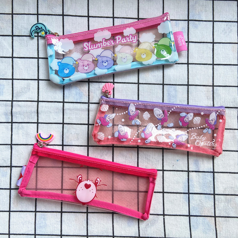 日韩卡通可爱文具收纳拉链袋彩虹熊牡蛎pvc拼接网纱透明零钱笔袋