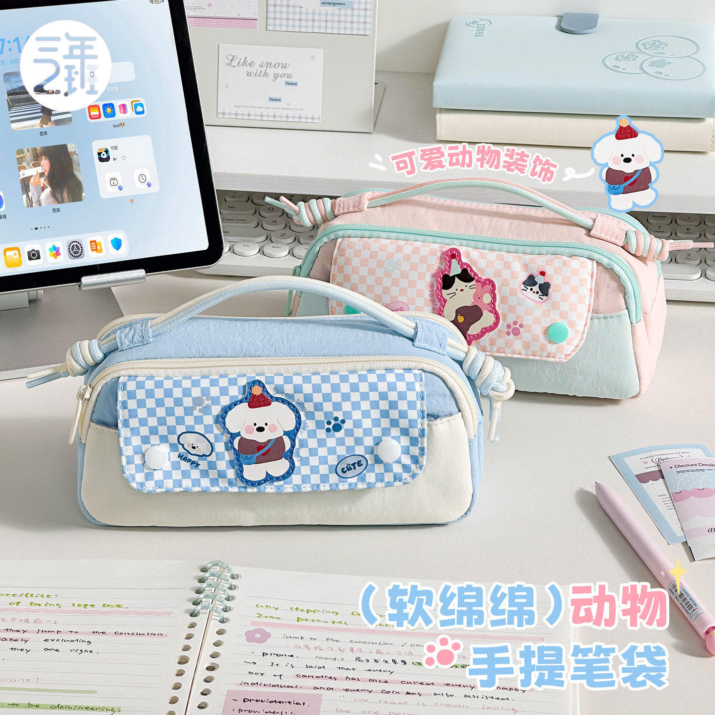 三年二班 软绵绵卡通动物手提笔袋小众不撞款2026新款便携日韩风