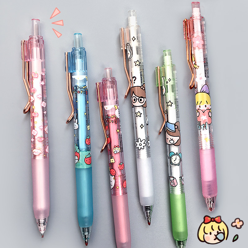 定制卡通笔日韩创意彩虹笔学生学习中性笔黑色碳素笔可爱文具刻字