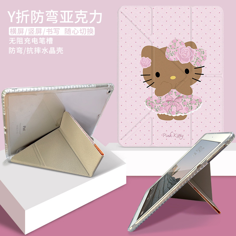 可爱卡通KT猫适用苹果iPadpro平板保护套Air磁吸分离mini带笔槽3折Y折10/11代创意日韩13/12.9/11/10.9寸防摔