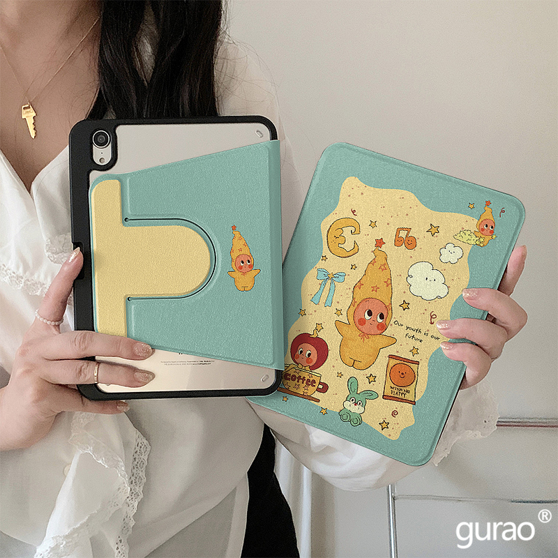 保护壳平板保护套可爱卡通番茄日韩风正反格纹3+Y型y折双面夹磁吸搭扣iPadPro11寸air4/5笔槽