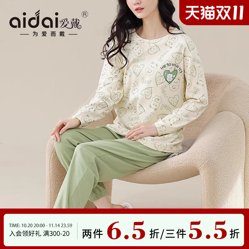 爱戴睡衣女春款2025新款大码休闲家居服纯棉束脚居家服可外穿套装