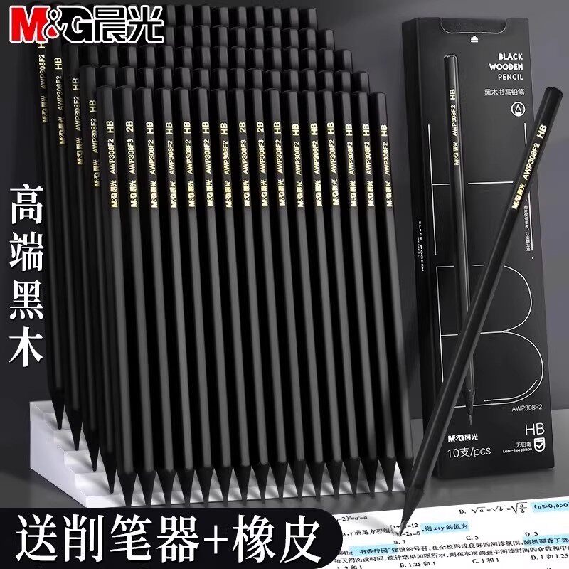 晨光黑木铅笔小学生专用一年级hb黑色铅笔幼儿园初学者考试专用二年级六角杆儿童2b铅笔无毒不易断芯带橡皮擦