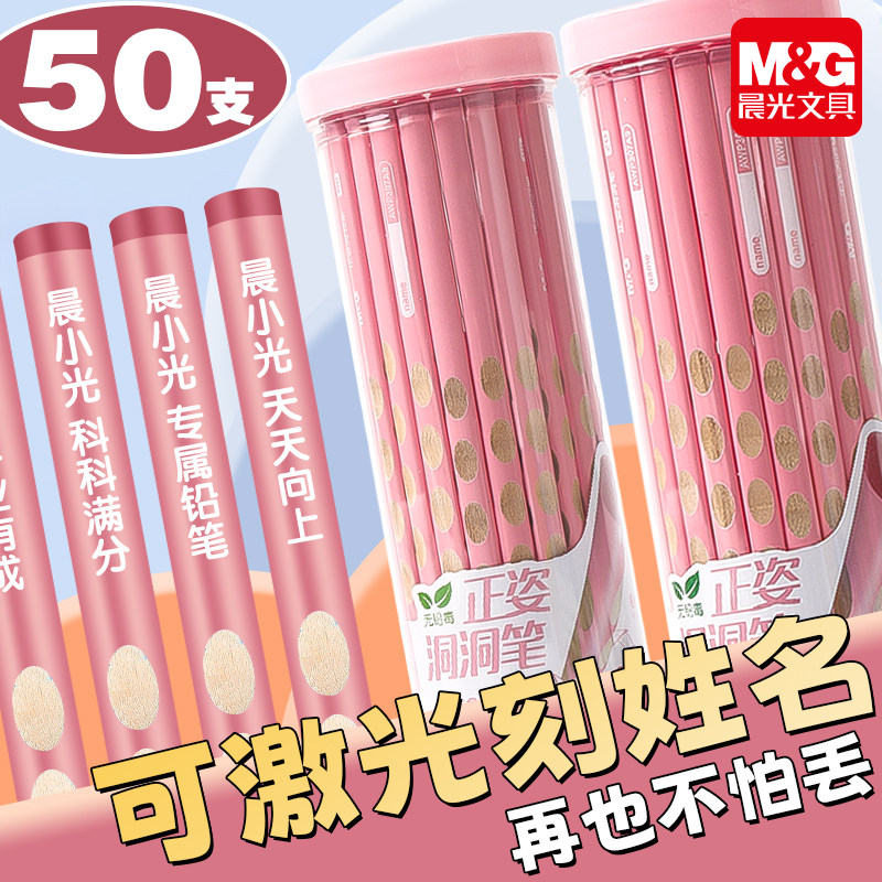晨光洞洞铅笔小学生专用一年级无毒hb幼儿园初学者用2b铅笔考试专用二三年级学生铅笔加粗洞洞笔练字矫正握姿