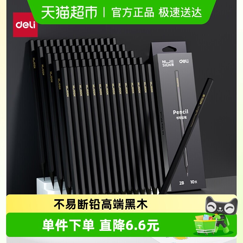 得力黑木铅笔石墨2B铅笔HB铅笔六角杆考试答题卡小学生儿童绘画用