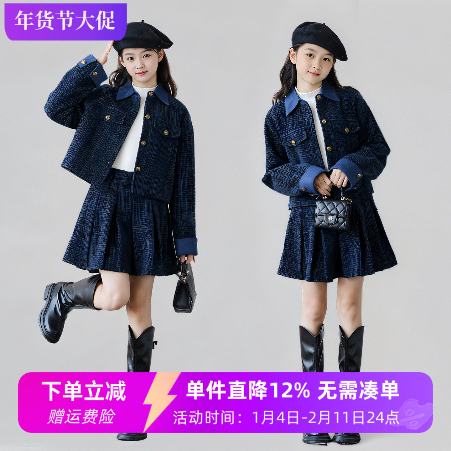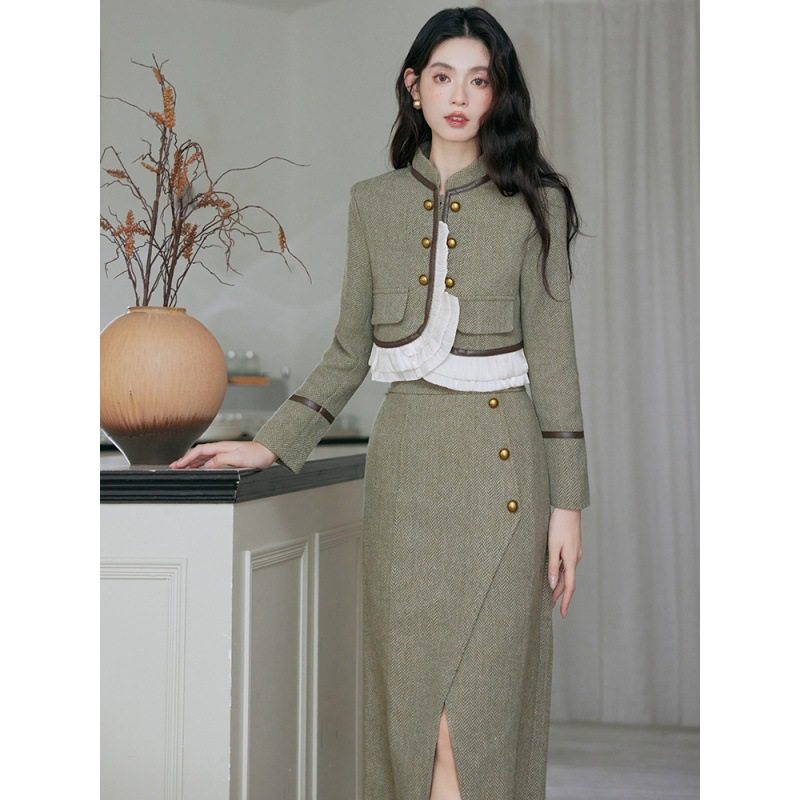 - 毛呢套装裙冬