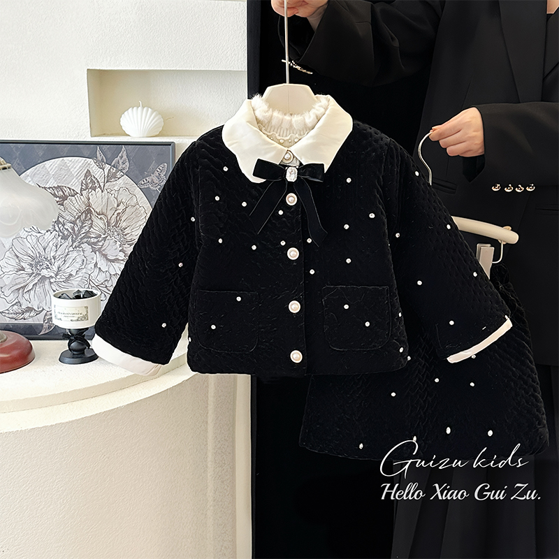 女童小香风套装秋冬季2025新款儿童短款夹棉上衣宝宝半身裙两件套
