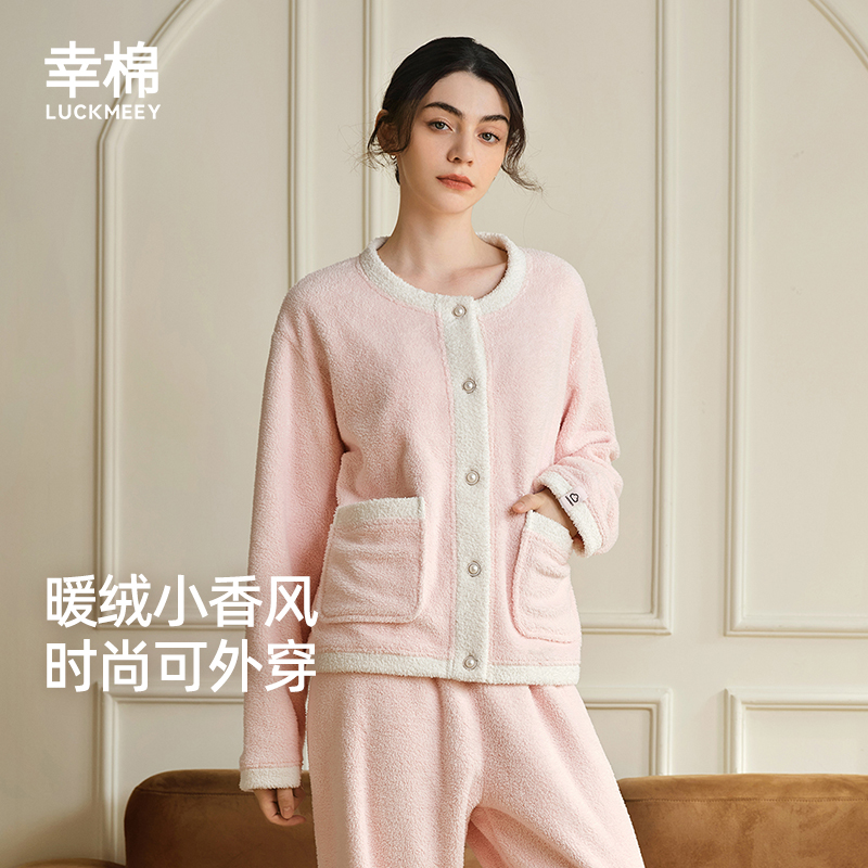 幸棉睡衣半边绒小香风套装秋冬厚款可外穿显瘦保暖防静电家居服女