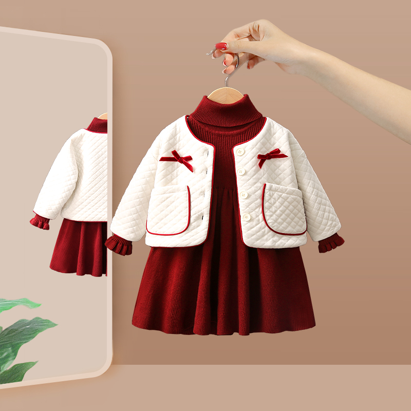 女童小香风套装秋冬新款2024洋气儿童年服两件套小女孩红色年服裙