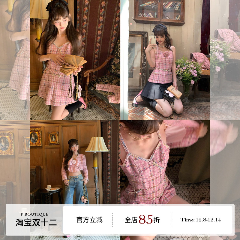 露露酱NN~【粉红泡泡】小香风套装秋冬夹棉套裙C23T080061